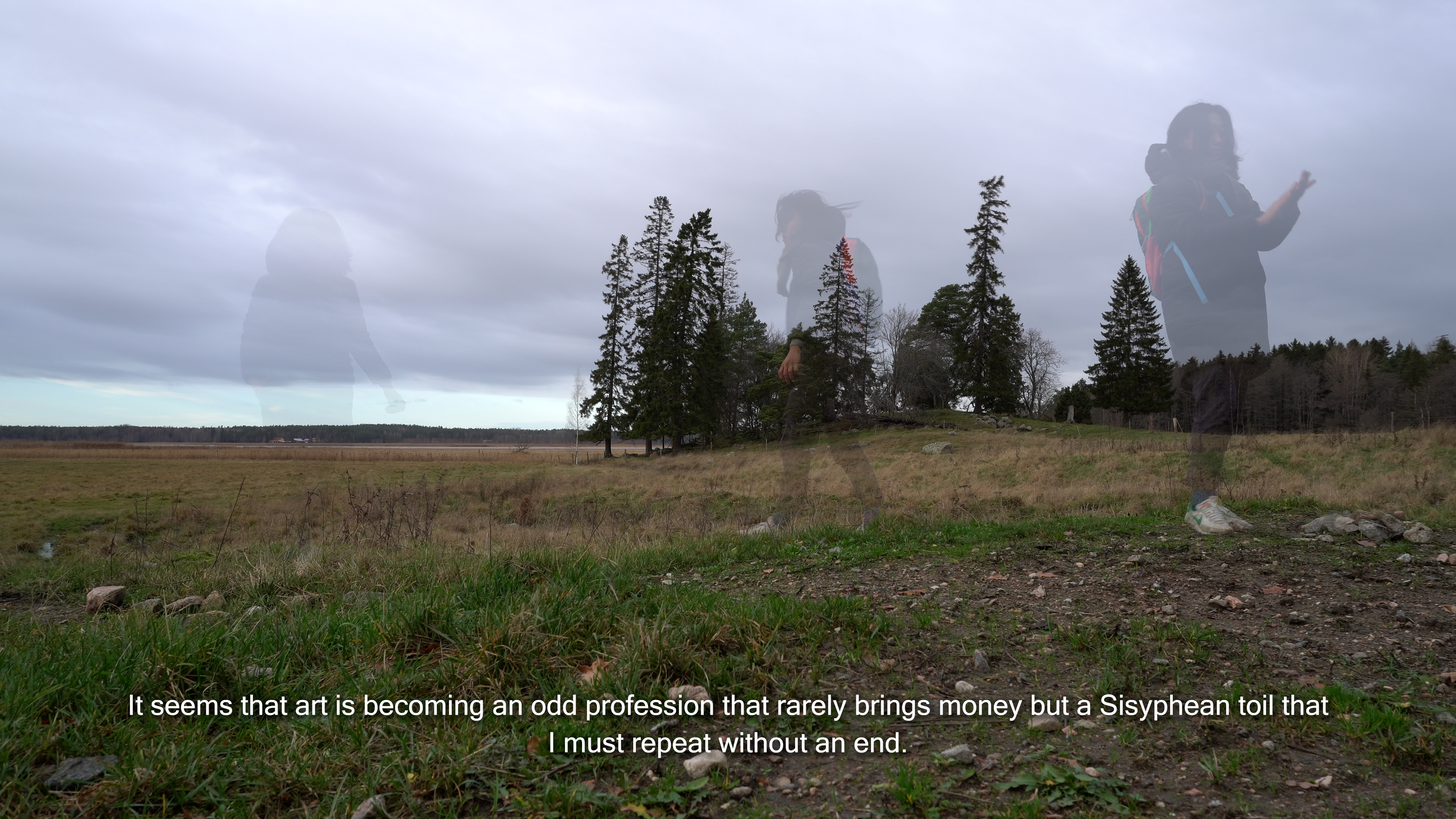 Goodbye, Max follows the process of creating a gravestone for Max—a fictional son born from a dream. Through first-person narration, the artist reflects on the fragile condition of being both an artist and a mother, the nature of artistic freedom, and the circumstances that allowed this dream—the concept itself—to manifest into a tangible work. By playfully juxtaposing the death of an imaginary child with the birth of art, the work blurs the boundary between fiction and reality. In becoming an artwork, Max finds his place in the real world—both as a video and as a gravestone installed at the Saari Residence in Finland.